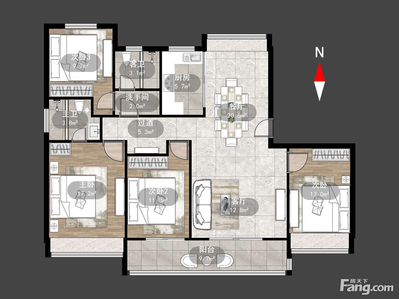 户型齐全,主打户型方正,卧室朝南三居