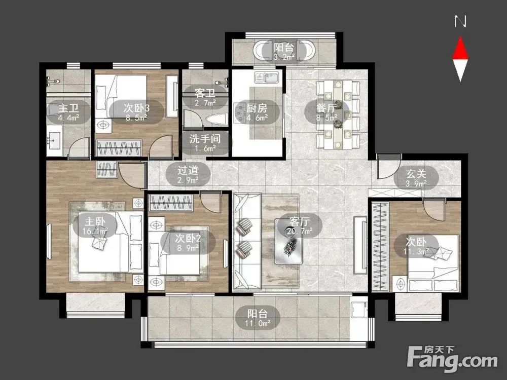户型齐全,主打户型方正,卧室朝南三居