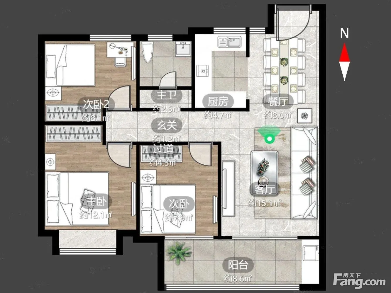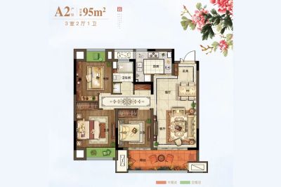 户型齐全,主打户型方正,卧室朝南,双阳台三居