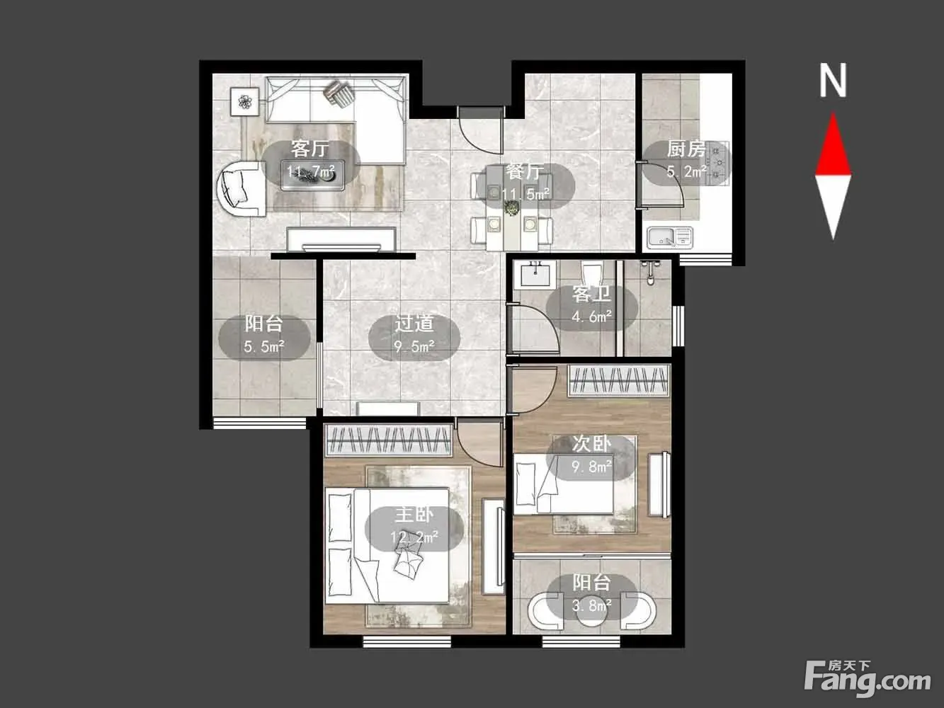 摩尔上品户型主要有85平-119平的户型方正,明卫,明厨,客厅朝南,双卧朝南的三居 、82平-119平的户型方正,明厨,明卫,客厅朝南的二居 。