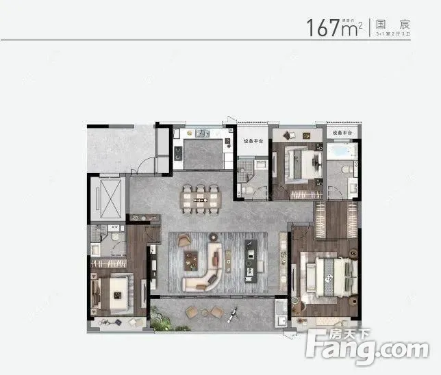 中吴江南春户型主要有113平-167平的明厨,明卫,主卧朝南的三居 、236平-236平的明卫,户型方正,南北通透,三开间朝南的四居 。