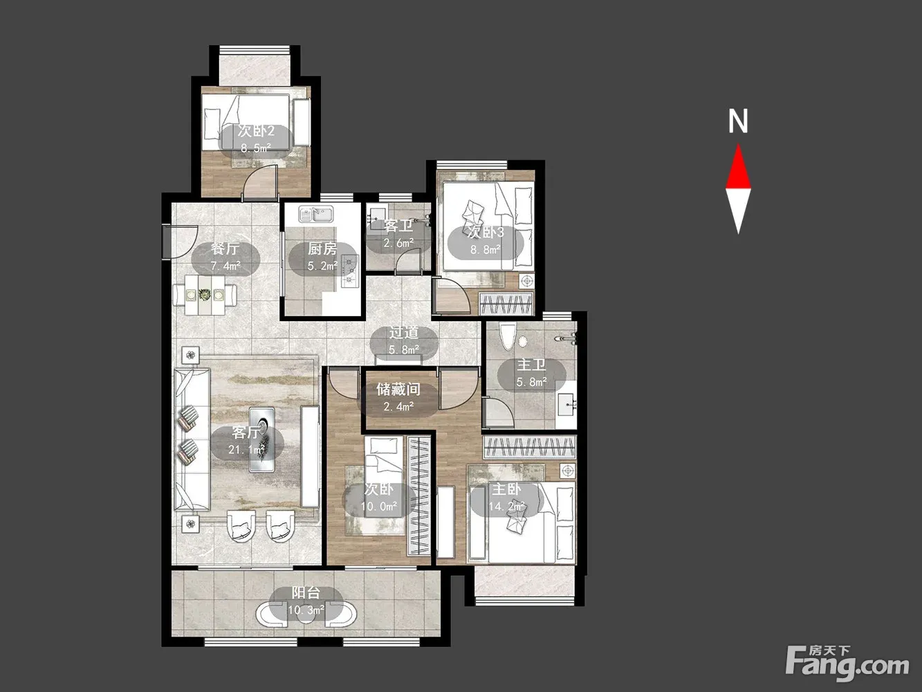 户型齐全,主打户型方正,卧室朝南三居