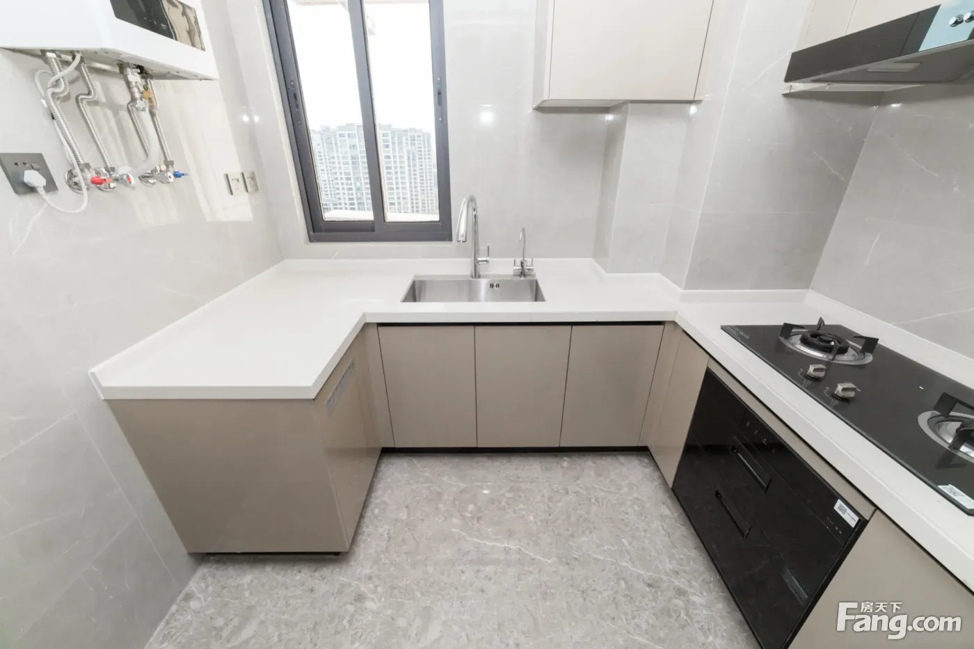 进门是一个玄关区域,沿墙布置一些储物柜,方便进出家门换鞋。 玄关另一侧就是厨房,买菜回家立刻就可以放进厨房,非常方便。U型厨房布置,更符台洗、切、煮的操作步骤,非常好 用。 厨房和餐厅中间通过玻璃隔断分隔,增加了通透感,隔绝了油烟。 阳台预留上下水,可以布置洗衣机、洗手盆,晾晒衣物,不会再洒得满屋水渍。 右边布置卧室区,动静分区明确,房间尺寸紧凑合理。 全飘窗赠送,增加了房间的空间延伸,更显得宽敞明亮。 主卧南北通长设计,打开南北窗户,自己就可以通风对流,舒适性增加很多。 北面的连廊遮挡了部分采光,这个是比较大的减分项。