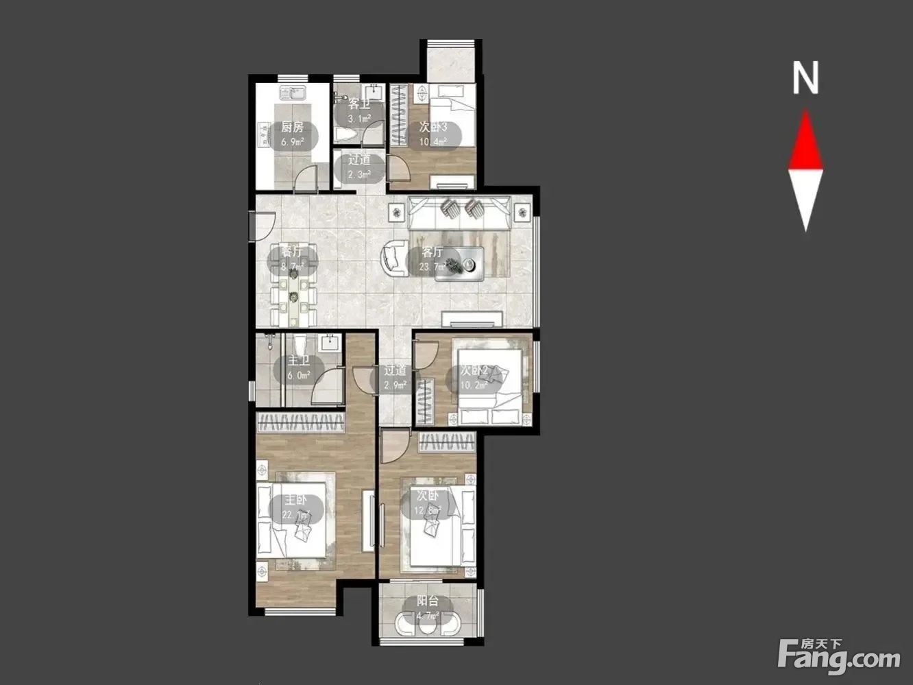 户型齐全,主打户型方正,明卫,明厨,客厅朝南,主卧朝南三居