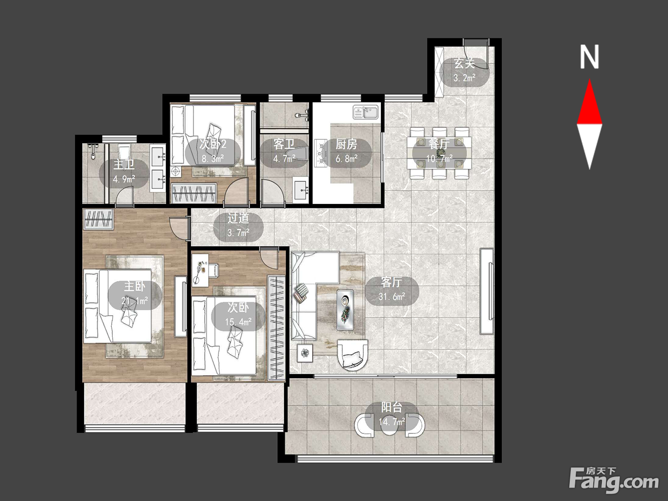 户型齐全,主打户型方正,卧室朝南三居