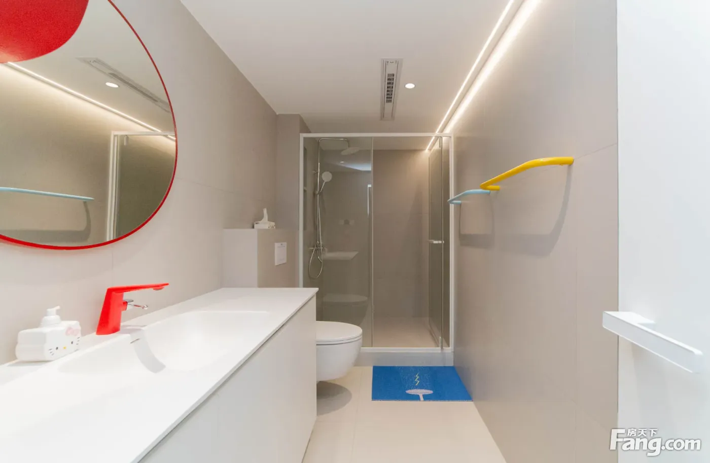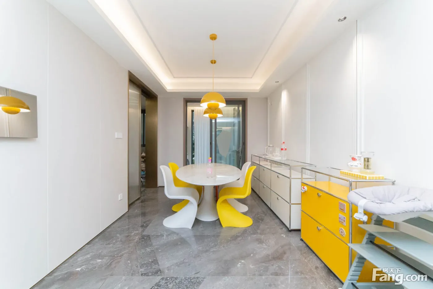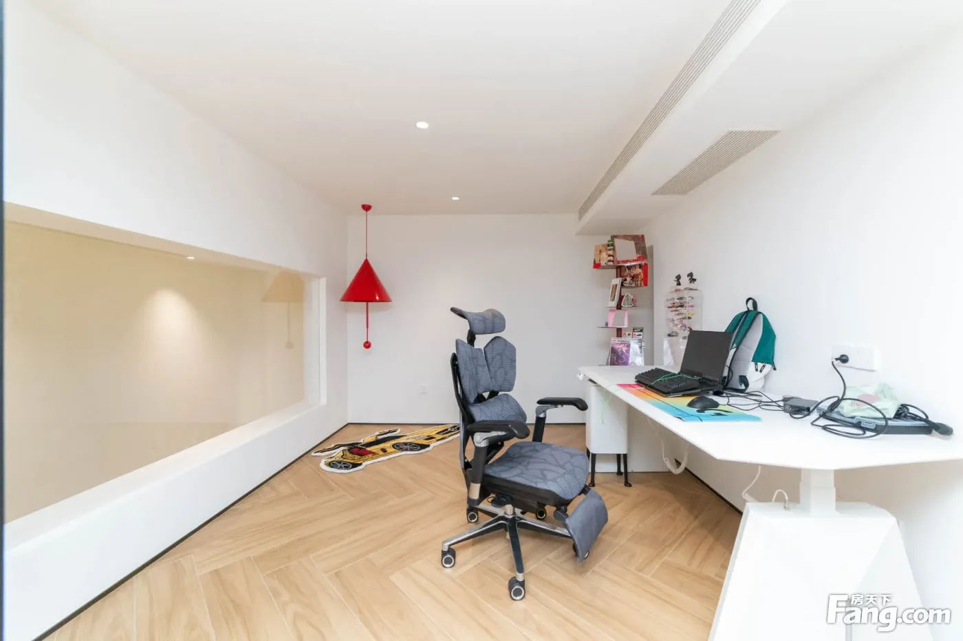 进门是一个玄关区域,沿墙布置一些储物柜,方便进出家门换鞋。 玄关另一侧就是厨房,买菜回家立刻就可以放进厨房,非常方便。U型厨房布置,更符台洗、切、煮的操作步骤,非常好 用。 厨房和餐厅中间通过玻璃隔断分隔,增加了通透感,隔绝了油烟。 阳台预留上下水,可以布置洗衣机、洗手盆,晾晒衣物,不会再洒得满屋水渍。 右边布置卧室区,动静分区明确,房间尺寸紧凑合理。 全飘窗赠送,增加了房间的空间延伸,更显得宽敞明亮。 主卧南北通长设计,打开南北窗户,自己就可以通风对流,舒适性增加很多。 北面的连廊遮挡了部分采光,这个是比较大的减分项。