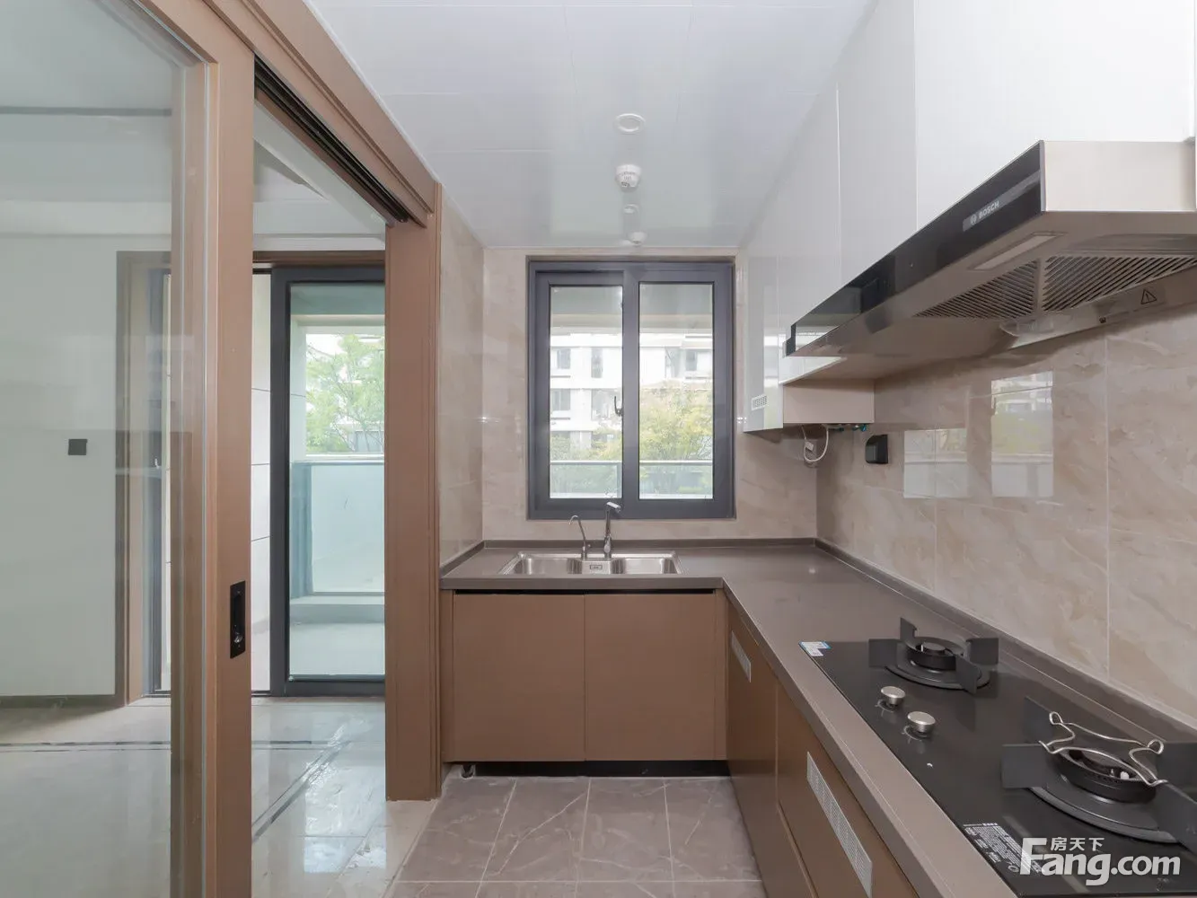 进门是一个玄关区域,沿墙布置一些储物柜,方便进出家门换鞋。 玄关另一侧就是厨房,买菜回家立刻就可以放进厨房,非常方便。U型厨房布置,更符台洗、切、煮的操作步骤,非常好 用。 厨房和餐厅中间通过玻璃隔断分隔,增加了通透感,隔绝了油烟。 阳台预留上下水,可以布置洗衣机、洗手盆,晾晒衣物,不会再洒得满屋水渍。 右边布置卧室区,动静分区明确,房间尺寸紧凑合理。 全飘窗赠送,增加了房间的空间延伸,更显得宽敞明亮。 主卧南北通长设计,打开南北窗户,自己就可以通风对流,舒适性增加很多。 北面的连廊遮挡了部分采光,这个是比较大的减分项。