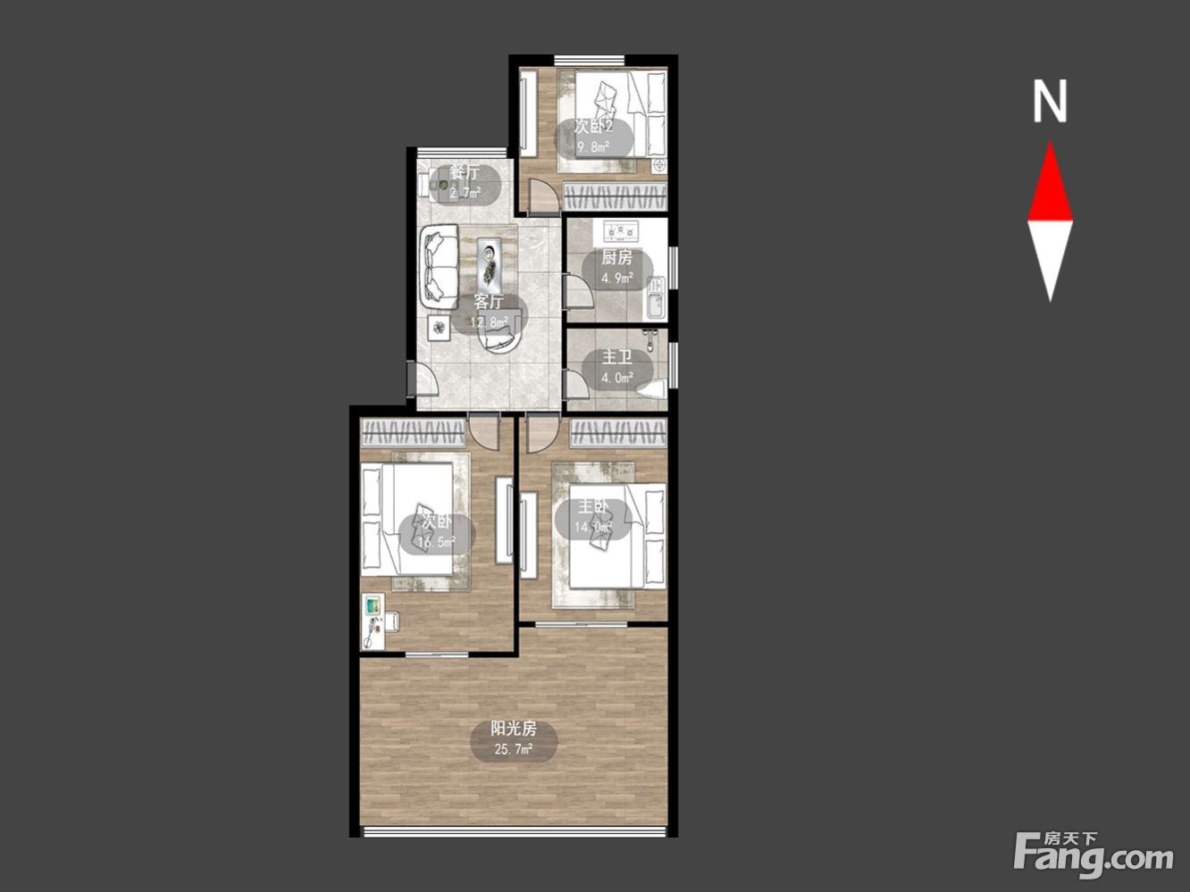 户型齐全,主打明厨,客厅朝南,双卧朝南,主卧朝南二居