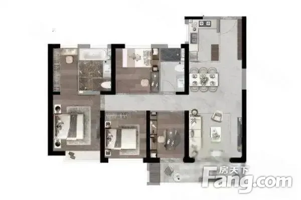 户型方正明厨明卫设计通风效果俱佳彰显优雅生活 户型格局采光视野好,房子居住舒适,没有浪费面积,此房在小区内属热门户型
