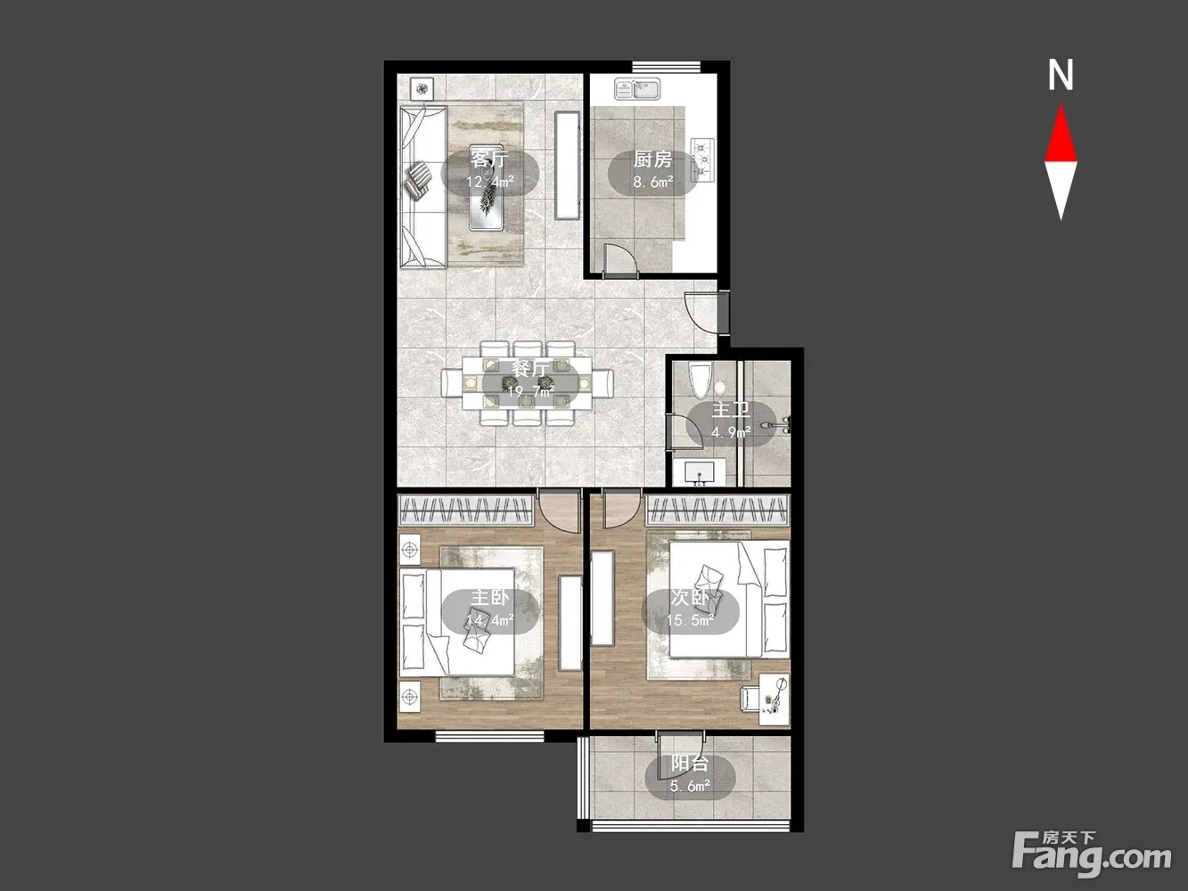 户型齐全,主打户型方正,明卫,明厨,客厅朝南,主卧朝南二居