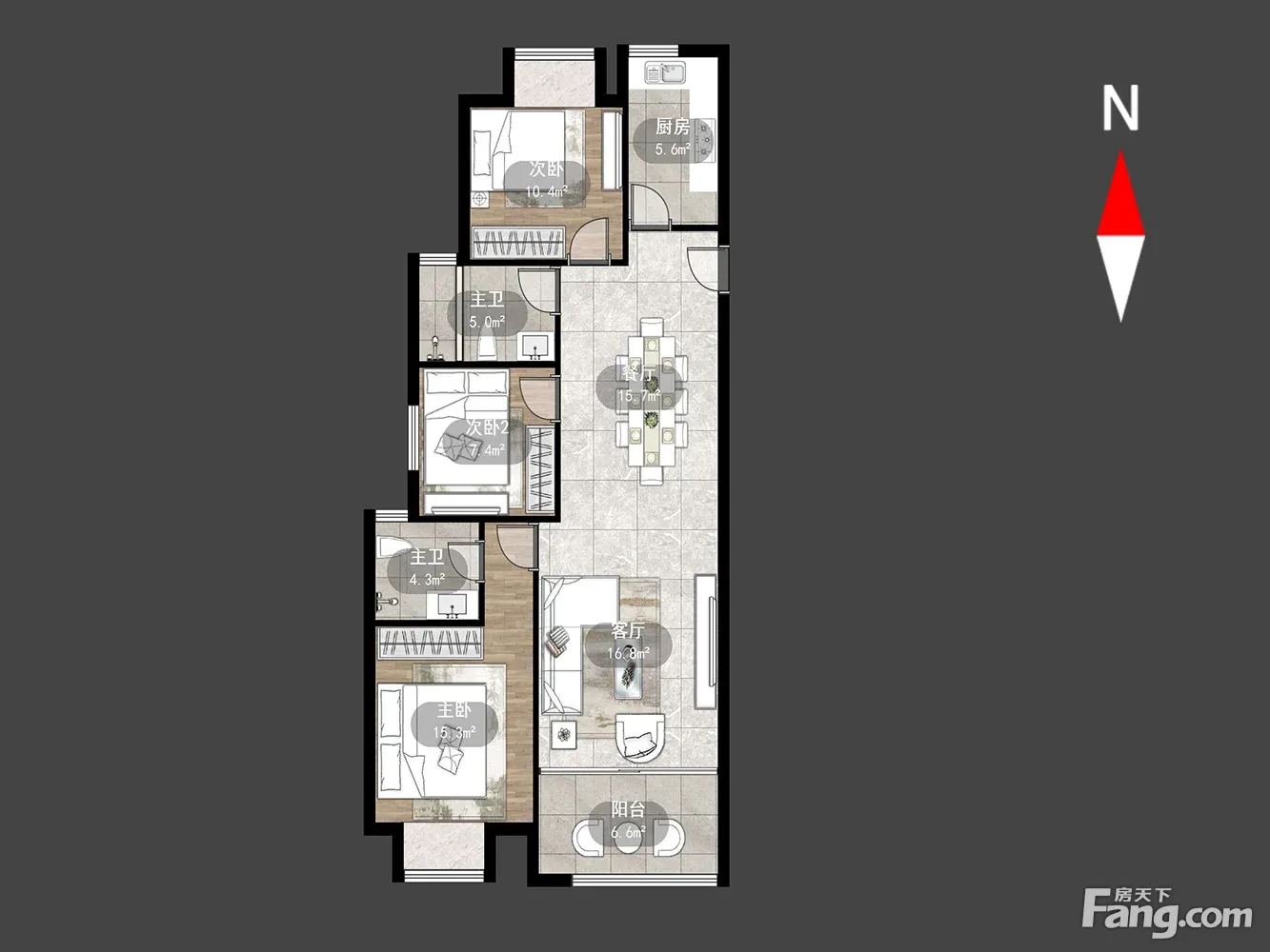 户型齐全,主打户型方正,明厨,明卫,主卧朝南三居