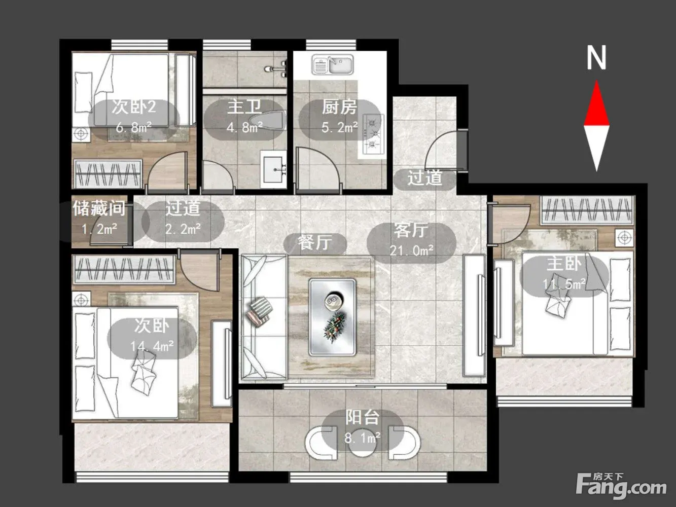户型齐全,主打户型方正,卧室朝南三居