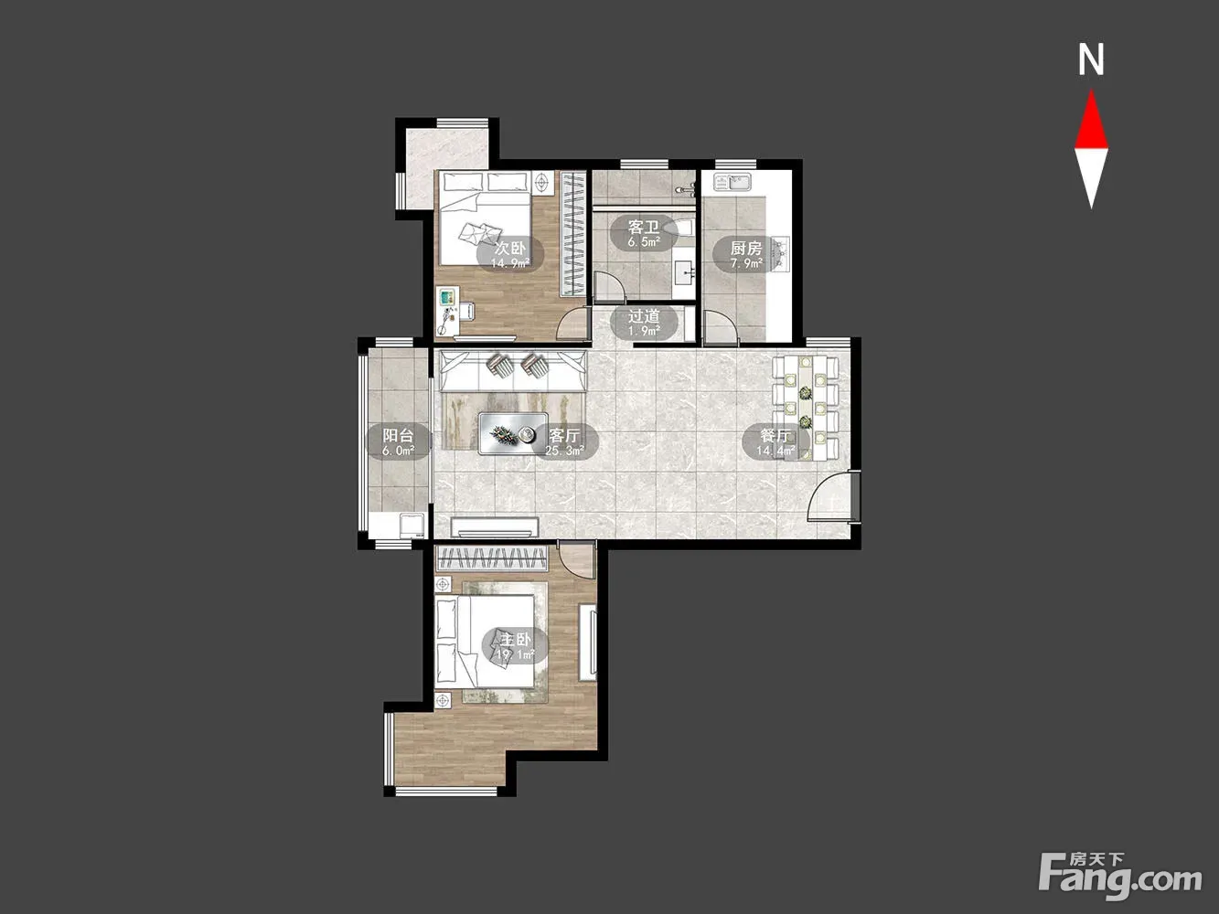 户型齐全,主打户型方正,明厨,明卫,客厅朝南,主卧朝南三居