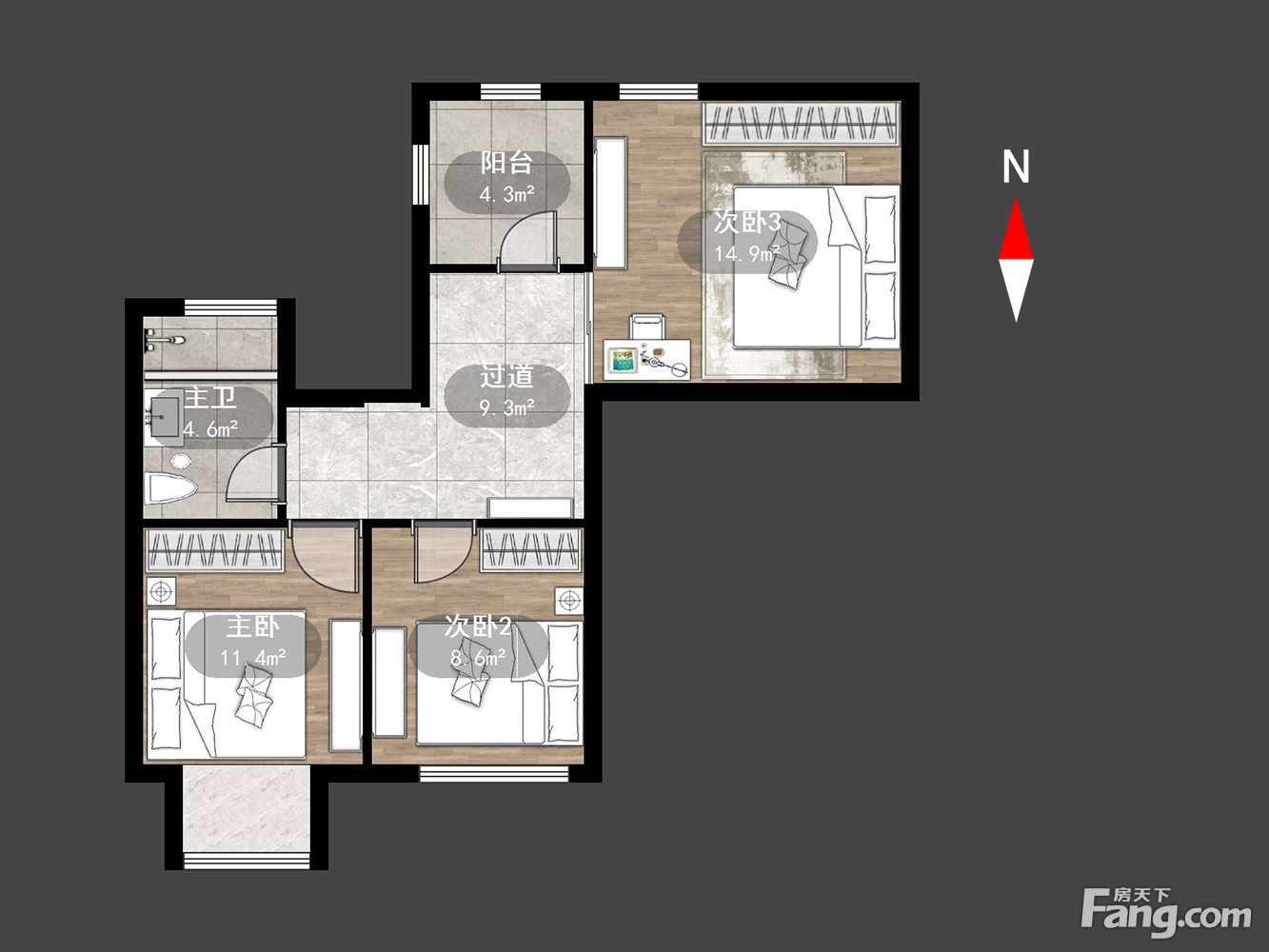 户型齐全,主打户型方正,卧室朝南三居