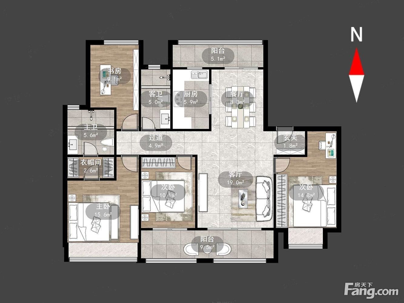 户型齐全,主打南北通透,全明格局,户型方正,采光充足四居