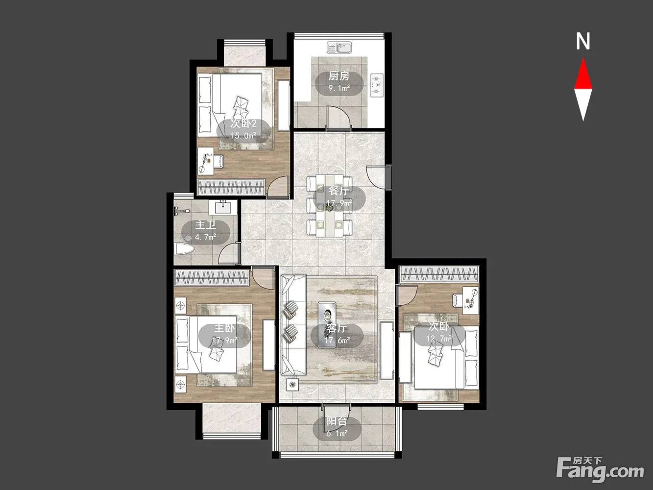 户型齐全,主打明卫,双阳台,双卧朝南三居