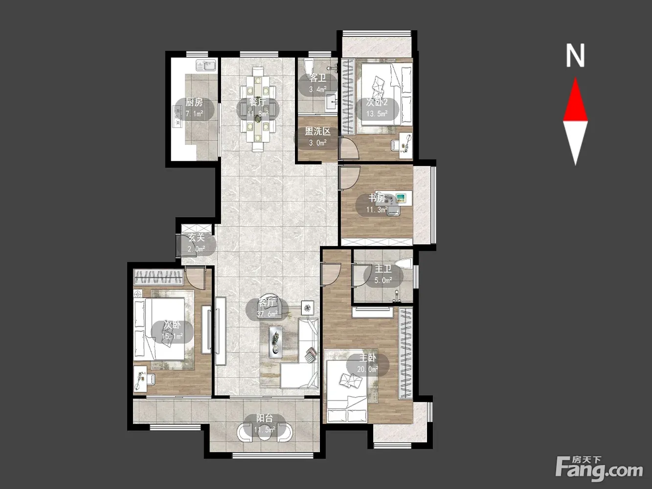 新城府翰苑东区 4室2厅 南