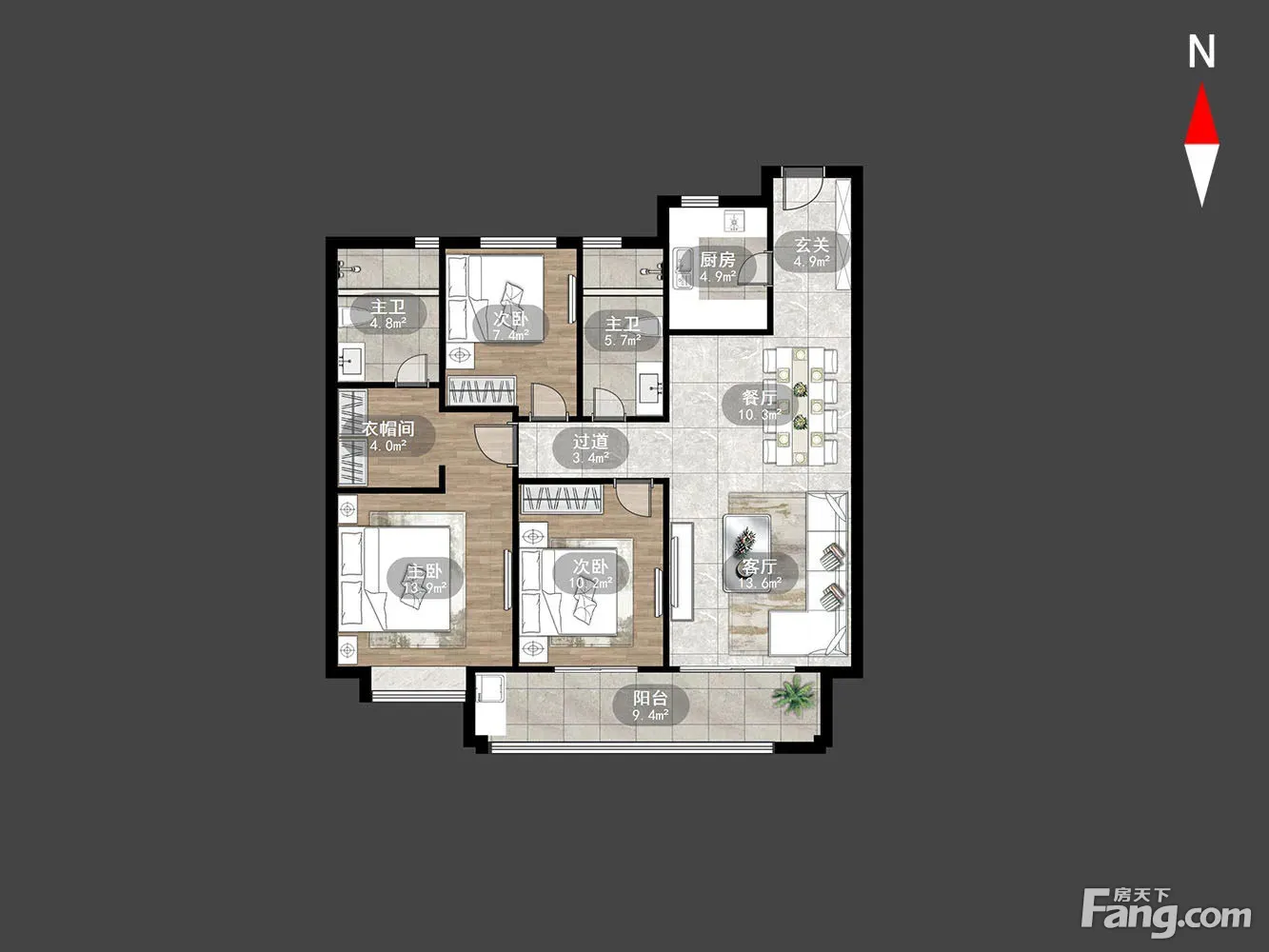 户型齐全,主打户型方正,卧室朝南四居