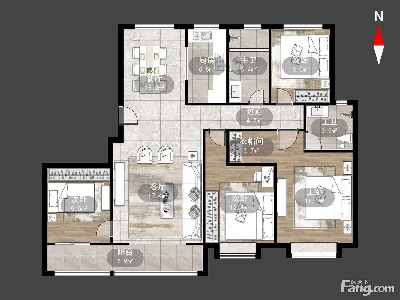户型齐全,主打户型方正,卧室朝南四居