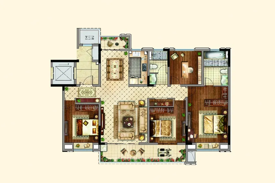 户型齐全,主打户型方正,卧室朝南四居