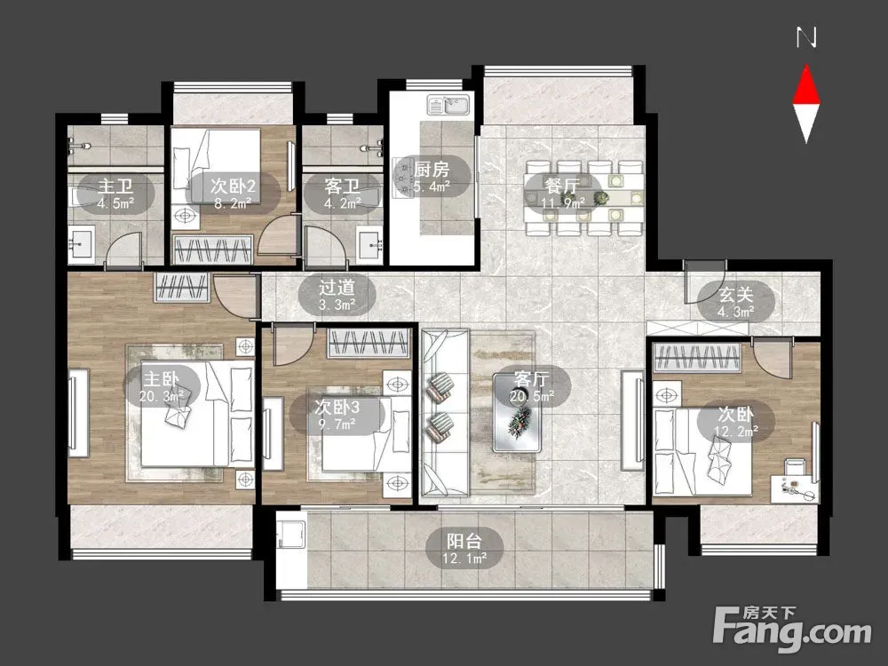 户型齐全,主打南北通透,主卧套间,大面宽阳台四居