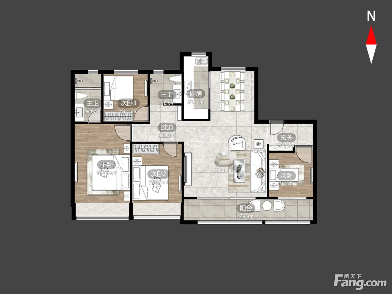 户型齐全,主打户型方正,卧室朝南三居