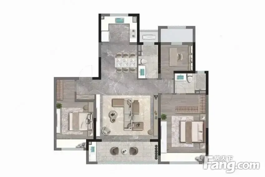 户型齐全,主打户型方正,卧室朝南,三开间朝南三居