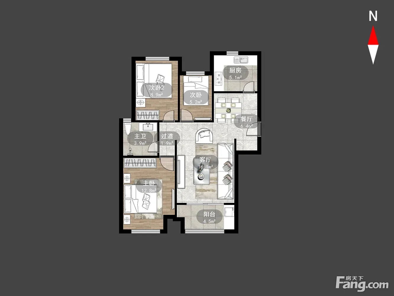 户型齐全,主打户型方正,明卫,明厨,双阳台,主卧朝南三居