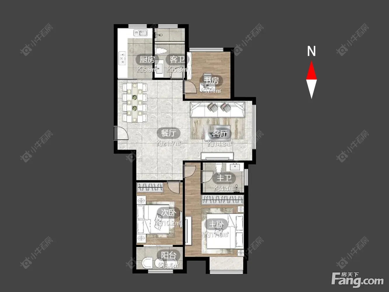 户型齐全,主打明卫,明厨三居