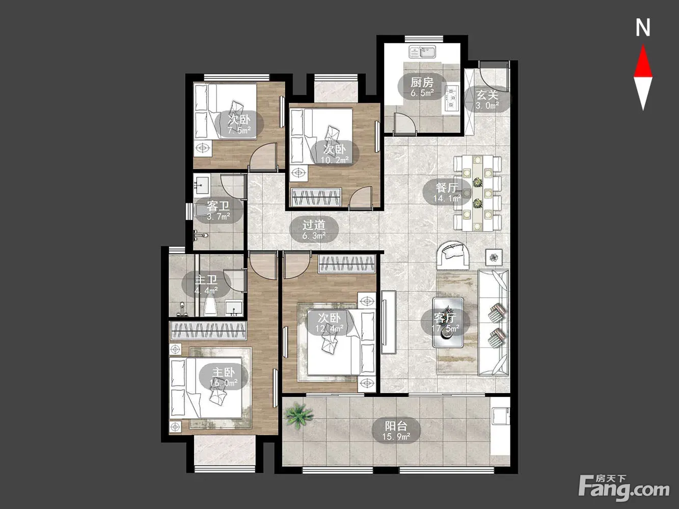 户型齐全,主打露台,南北通透三居