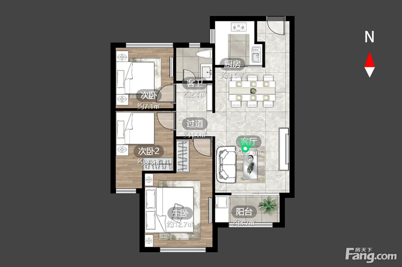 户型齐全,主打露台,南北通透三居