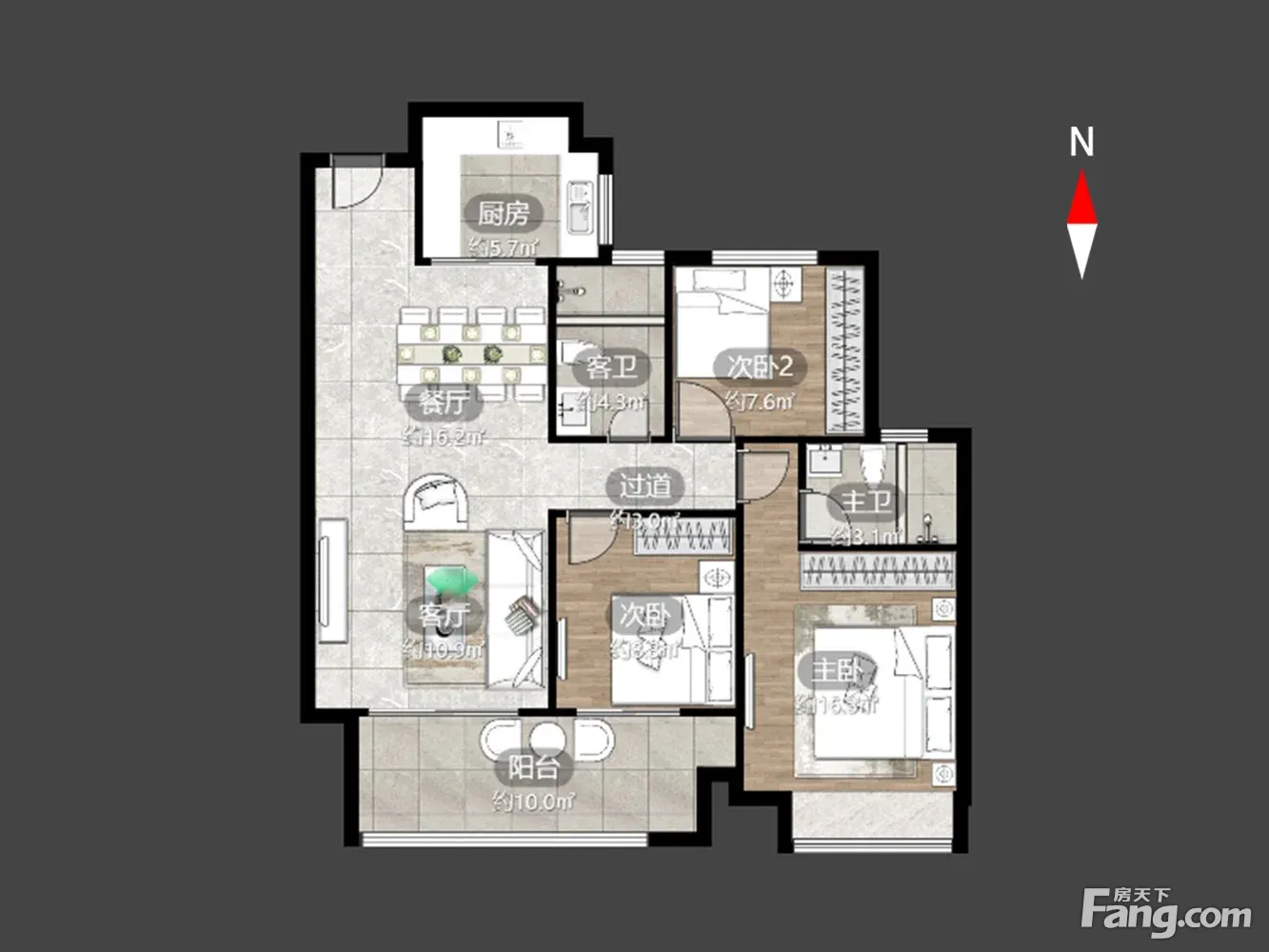 户型齐全,主打户型方正,卧室朝南三居