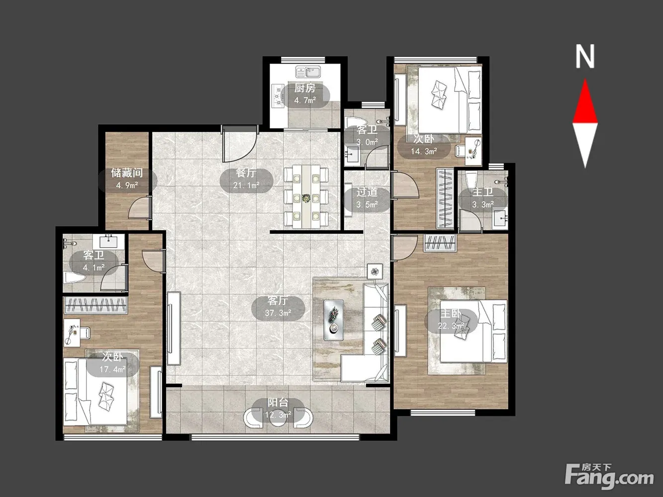 户型齐全,主打户型方正,卧室朝南三居