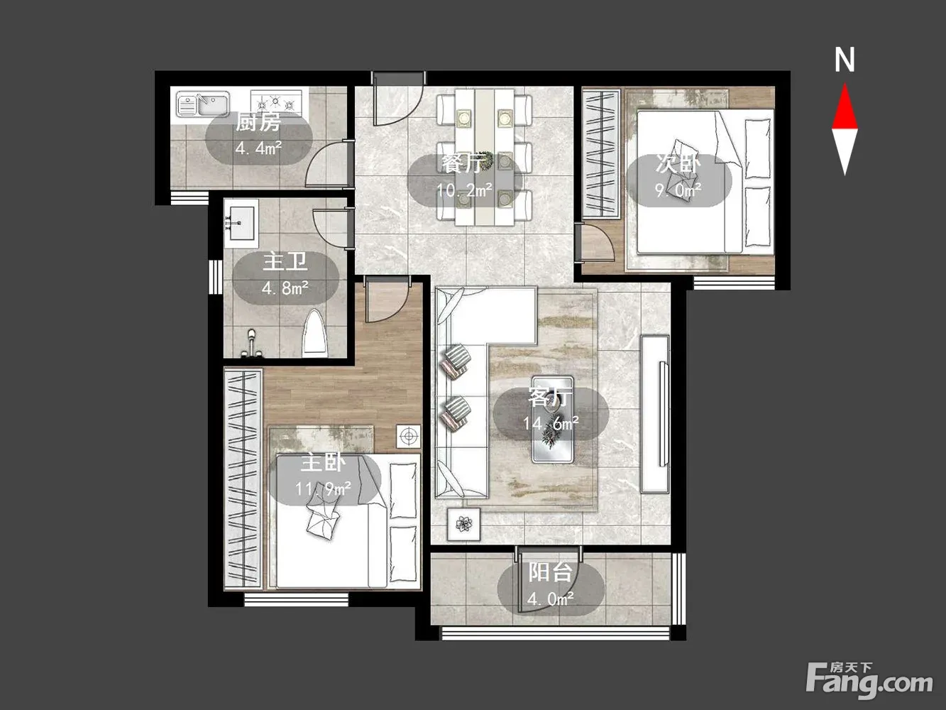 户型齐全,主打户型方正,明卫,明厨,双阳台,主卧朝南三居