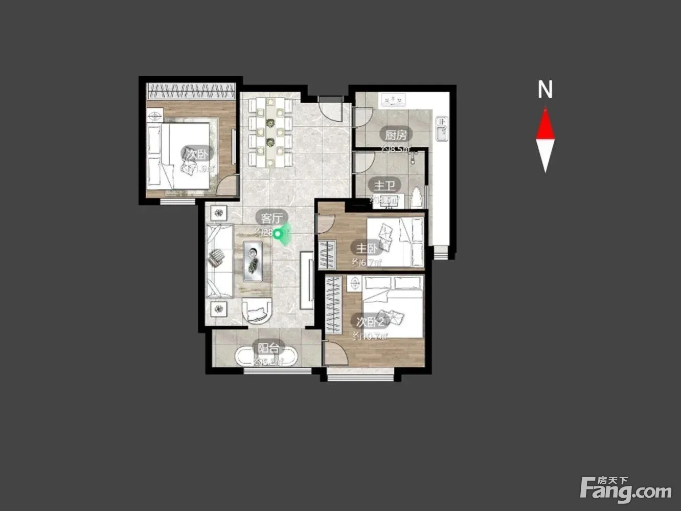 户型齐全,主打户型方正,明厨,明卫,独立衣帽间,双卧朝南三居