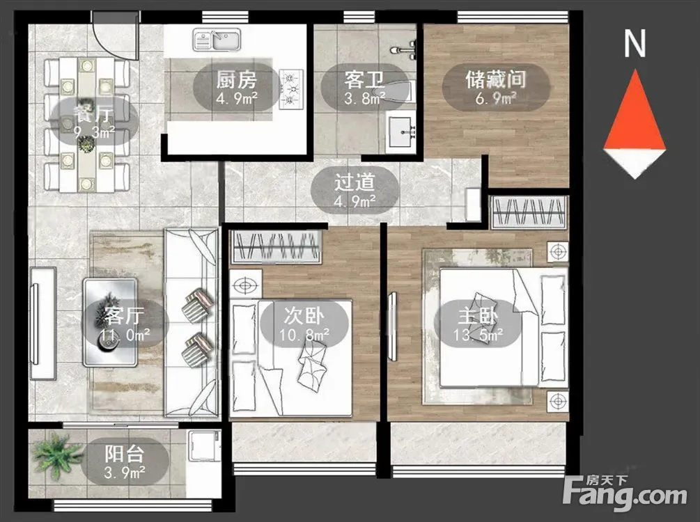 三口之家,四代同堂,也都比较适合。南向向阳采光佳,南北通透通风性好。