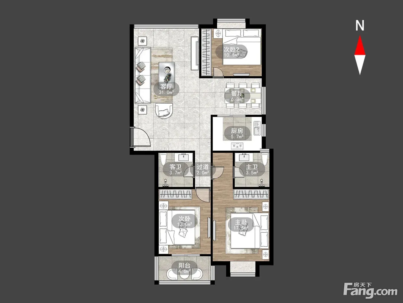 户型齐全,主打户型方正,明厨,明卫,客厅朝南,主卧朝南三居
