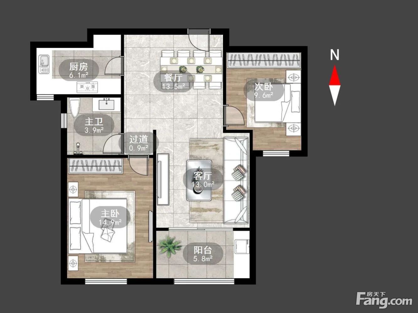 户型齐全,主打户型方正,明卫,明厨,主卧朝南二居