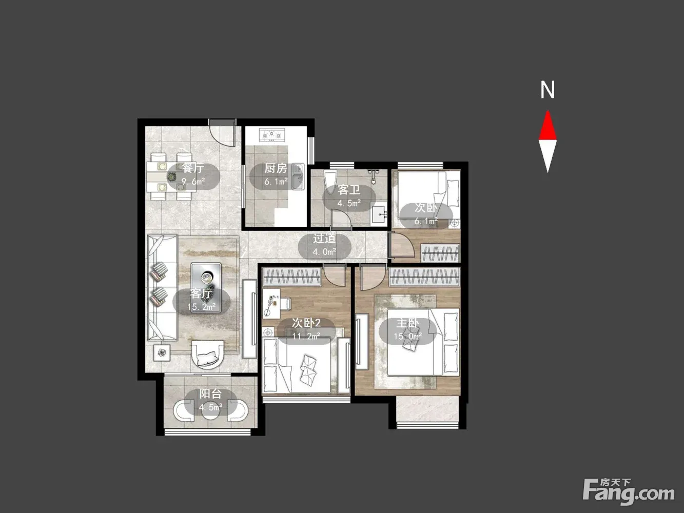 天润园3室1厅南