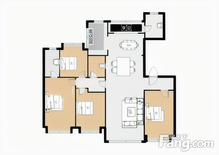 户型齐全,主打全明格局,采光充足,客厅朝南,卧室朝南,入户花园四居