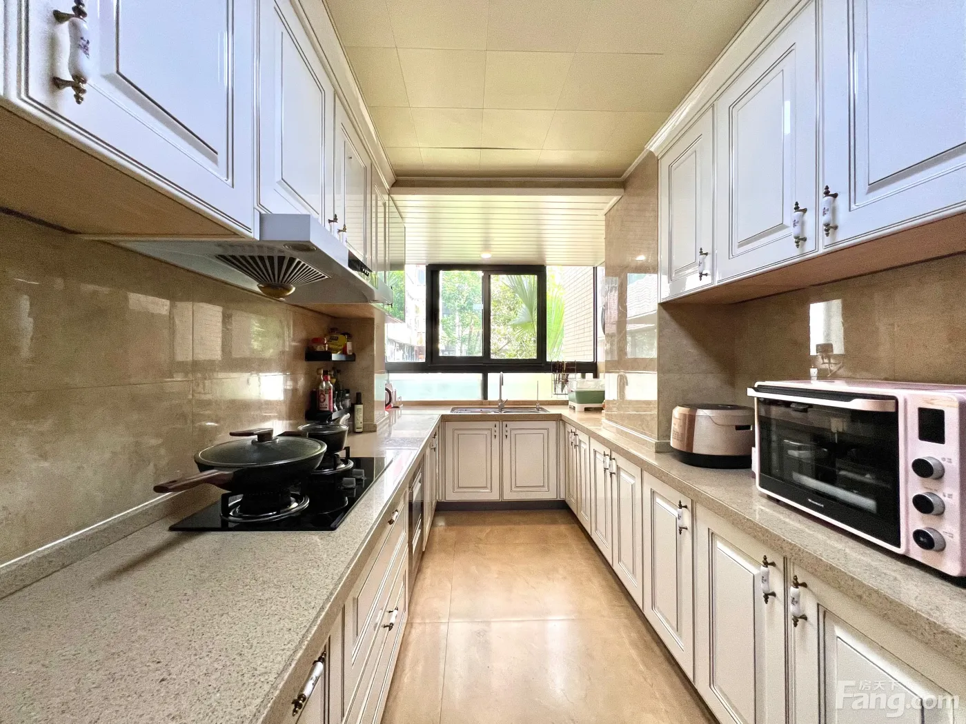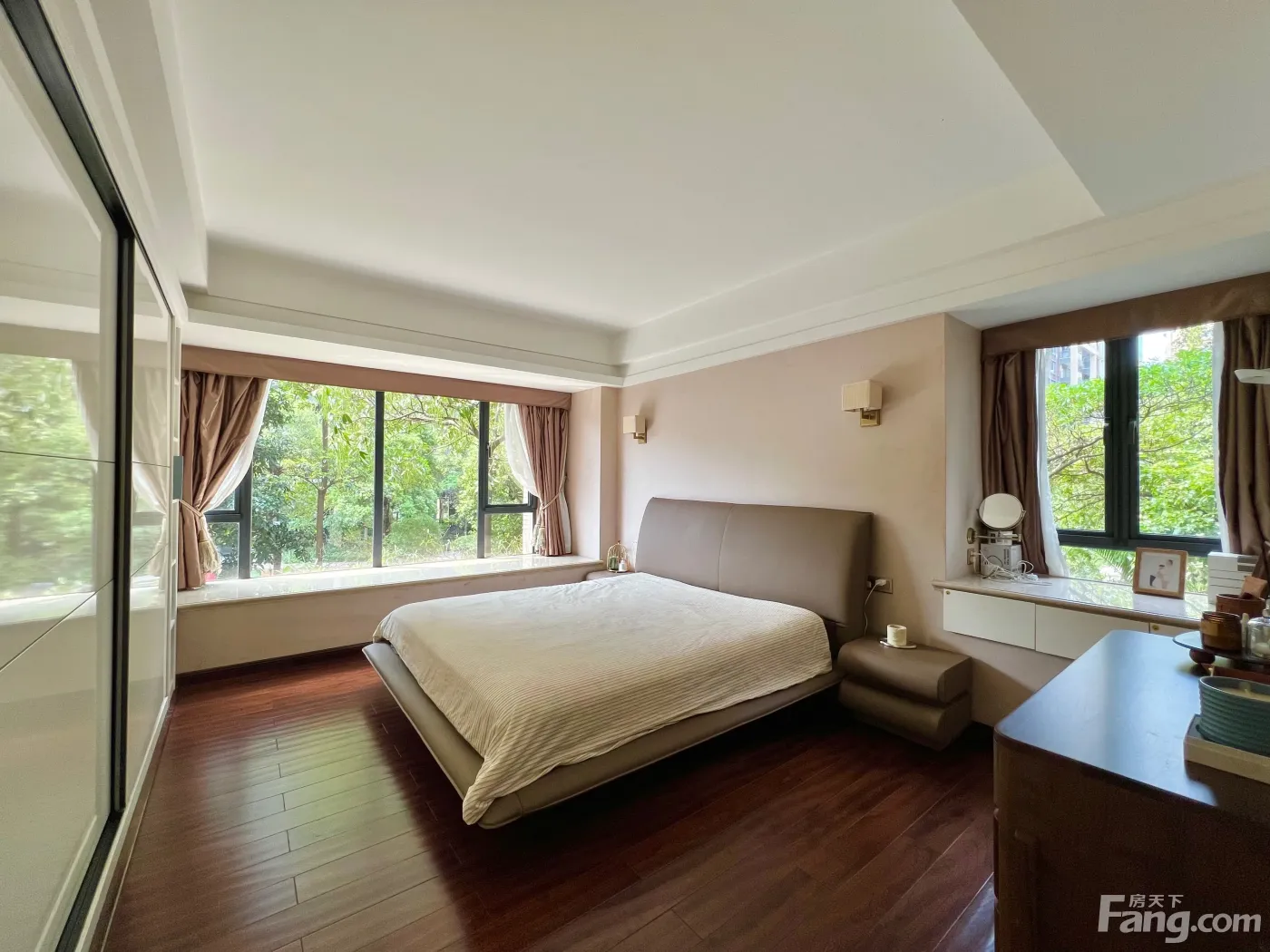 房产证145.96平米,但实际使用面积达到165平米,带独立入户花园,请知名设计公司打造,拆除所有非承重墙后重新打造全新户型,近7米长U型操作台面及橱柜,4间大卧室,1间书房,共5房,每间房都可放置1.5-1.8米以上大床和超大尺寸满墙衣柜,储物功能强大;主卫和公卫都是双盆洗手台,独立大尺寸冲凉房,南北通透,通风好,无敌窗景。