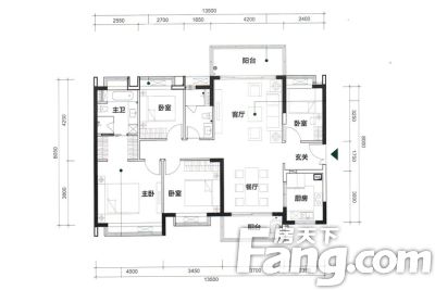 户型齐全,主打客厅朝南,主卧带卫,干湿分离,双阳台三居