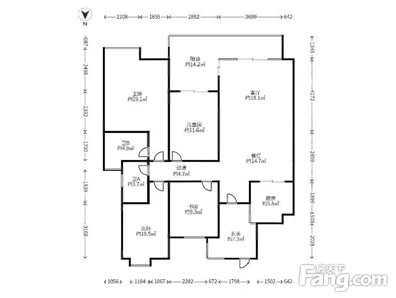 户型齐全,主打明卫,双卧朝南四居
