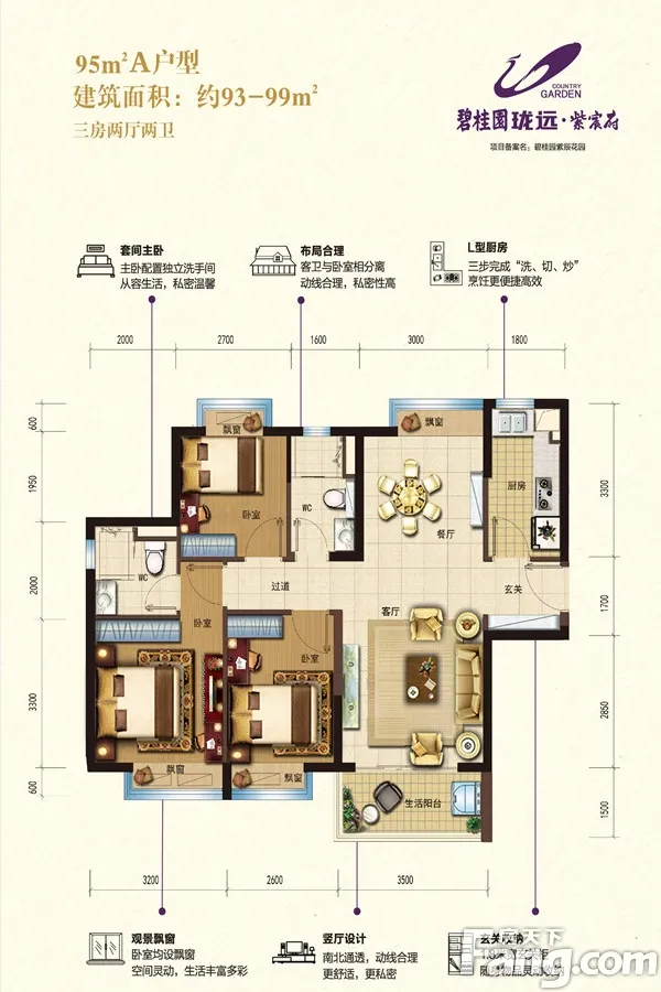 碧桂园紫宸府 3房2厅2卫 业主诚意出售 看房随时方便