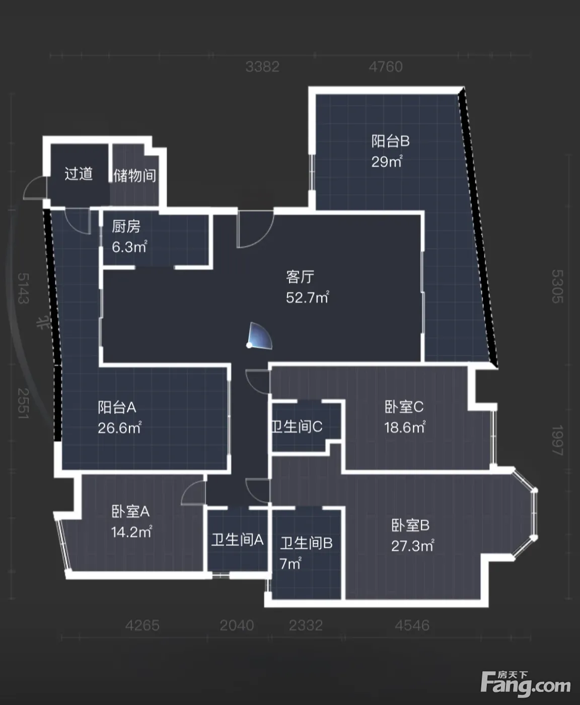 老天噢!270W即可得217平的大平层5居4卫!实在没公摊!建面是216.93平米,双边大阳台有一半没算,还有整个一房间没算,完全都顶掉公摊了!