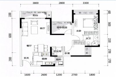 户型齐全,主打户型方正,明卫,明厨,主卧朝南二居