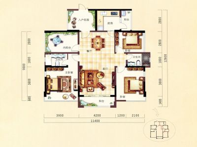 房屋拥有相对宽松的尺寸,布局通透,动静分离,设计豪华