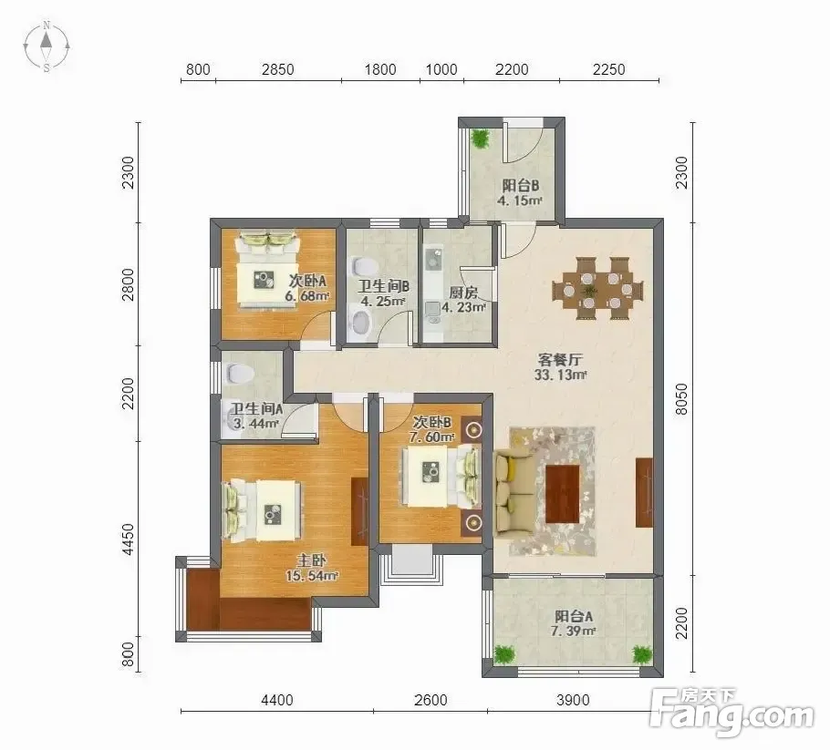 户型齐全,主打明卫,双阳台,主卧朝南三居