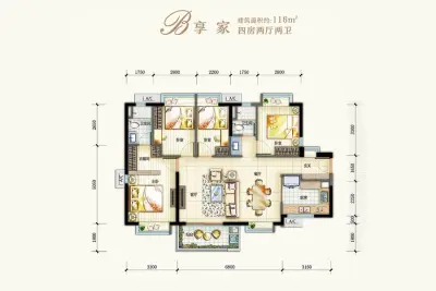 户型齐全,主打户型方正,主卧带卫,带衣帽间,大面宽阳台四居