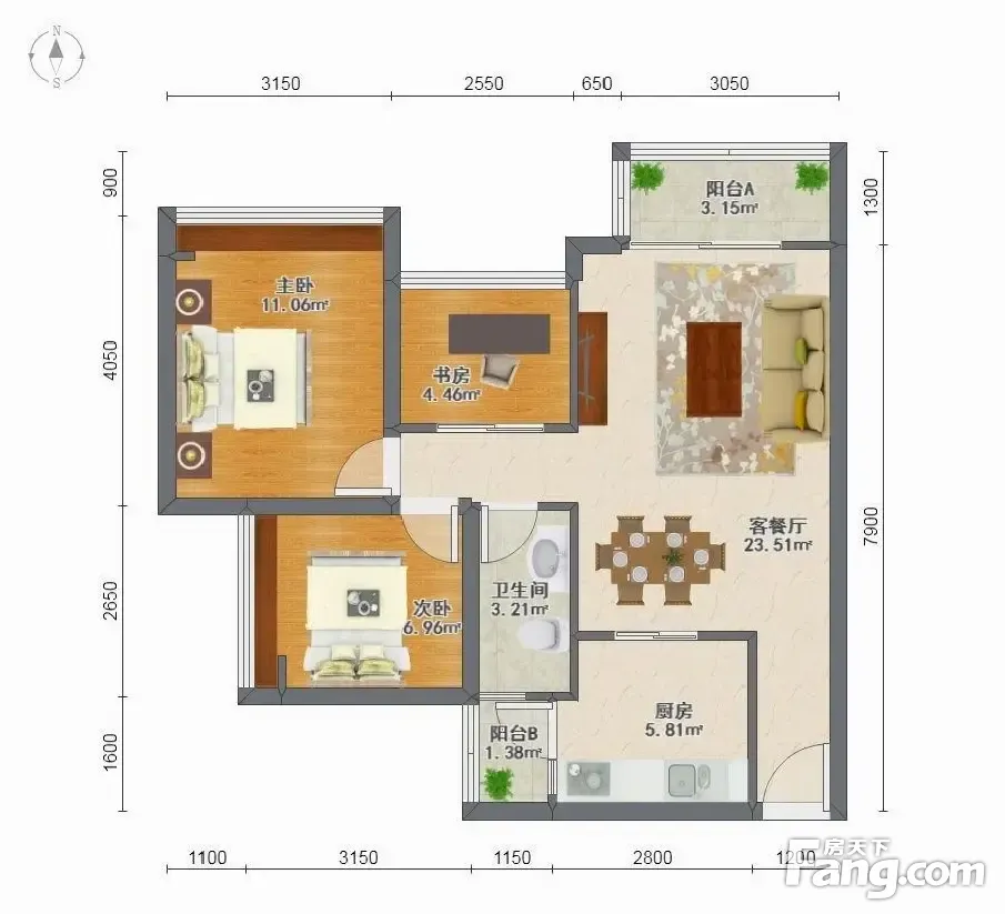 富通自在城户型主要有70平-97平的户型方正,明卫,明厨,主卧朝南的二居 、85平-131平的户型方正,明卫,双阳台,主卧朝南的三居 。